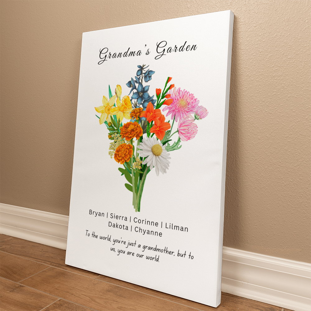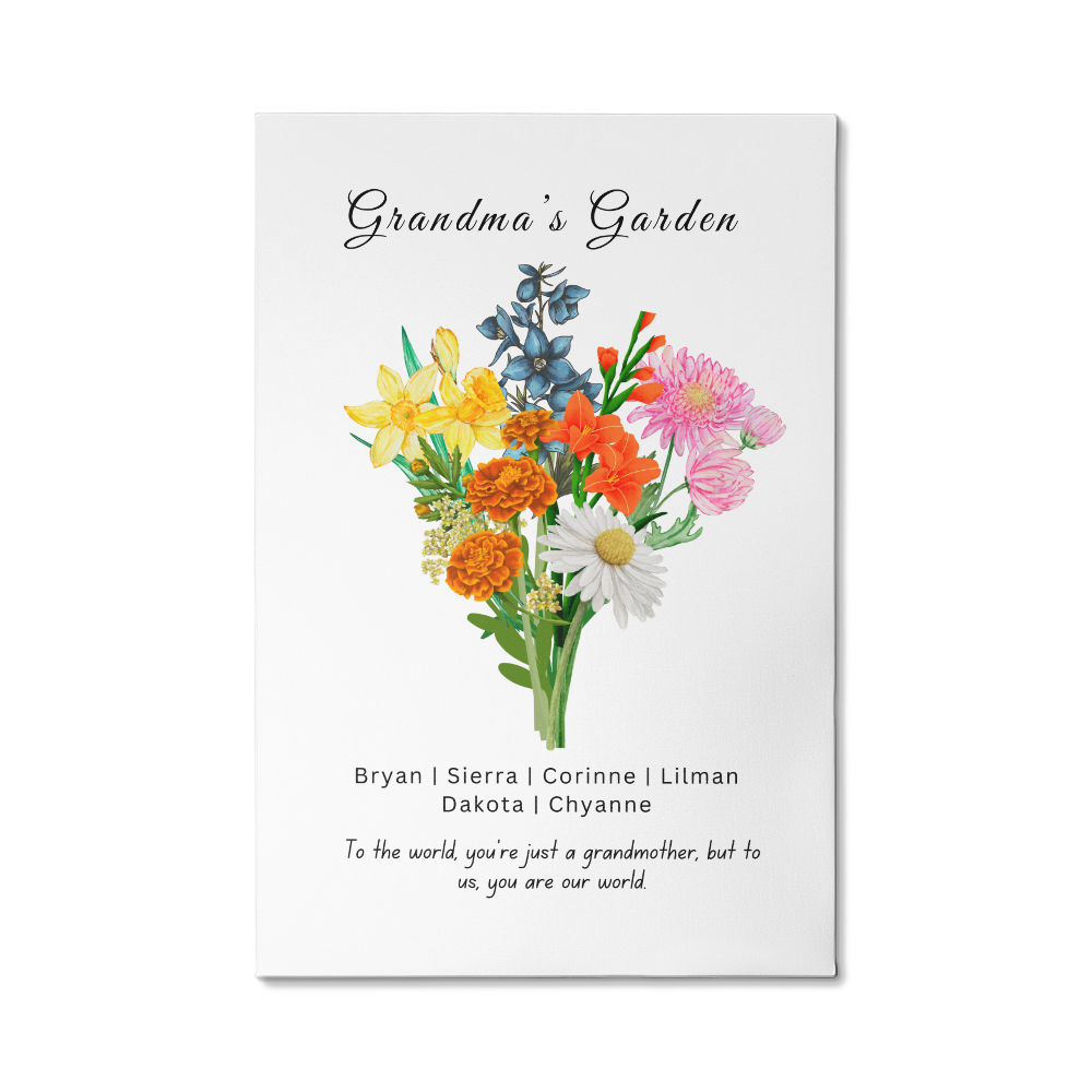 Grandma's Flower Garden | Grandchildren's Birth Flower| Wrapped Canvas