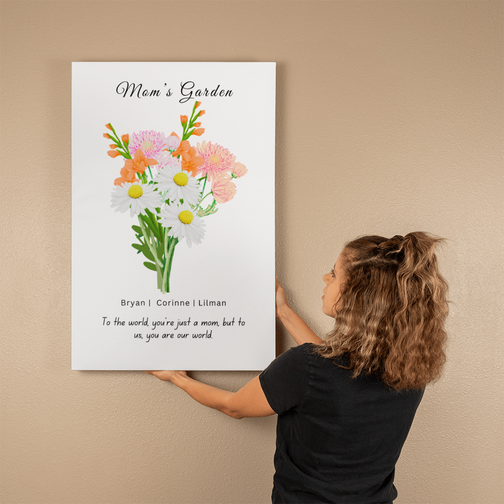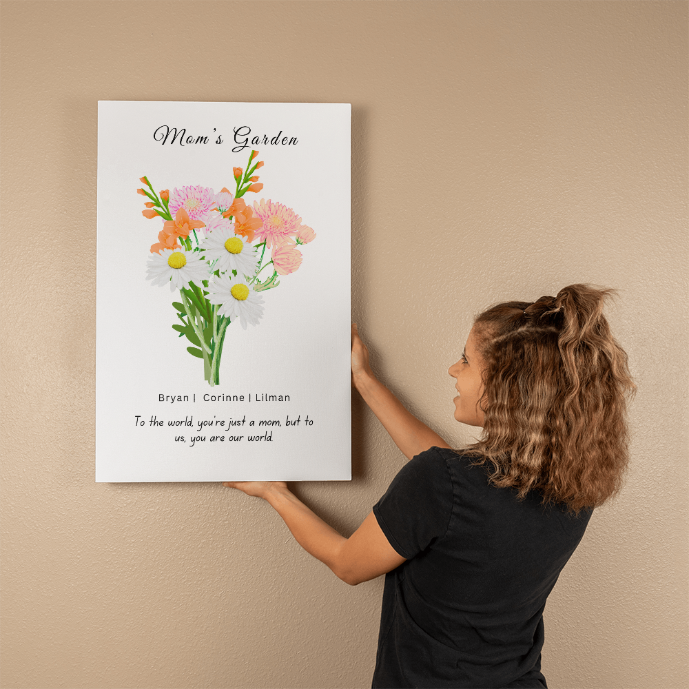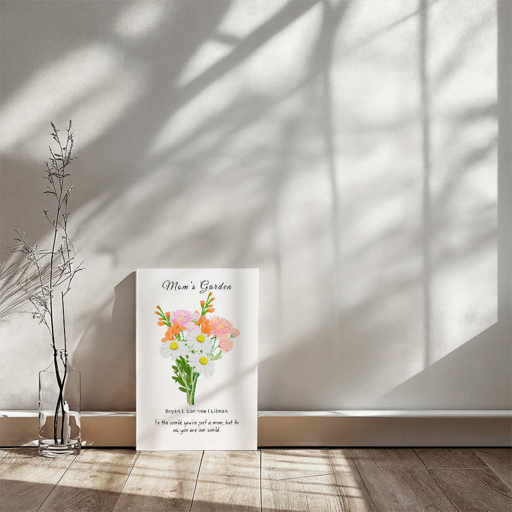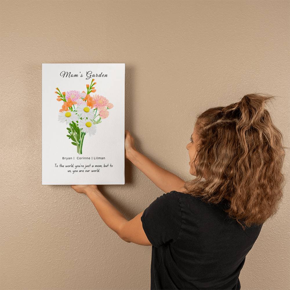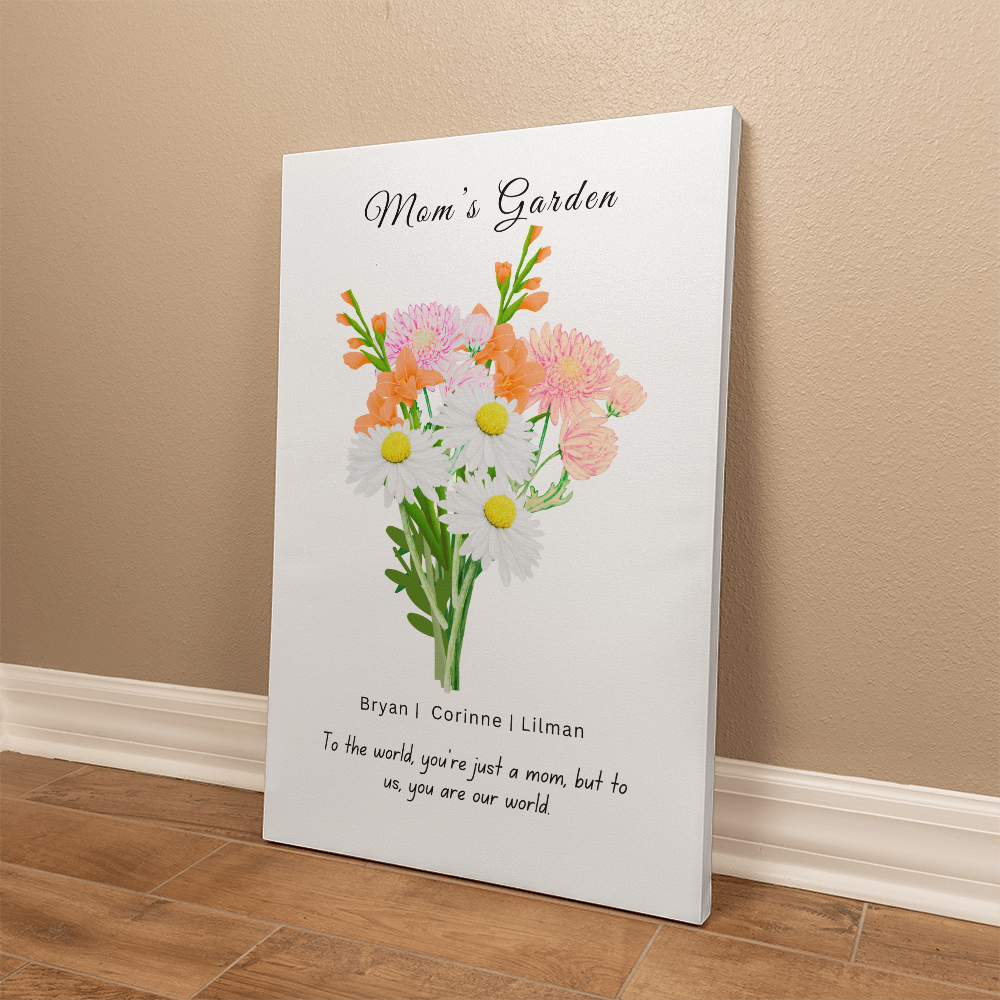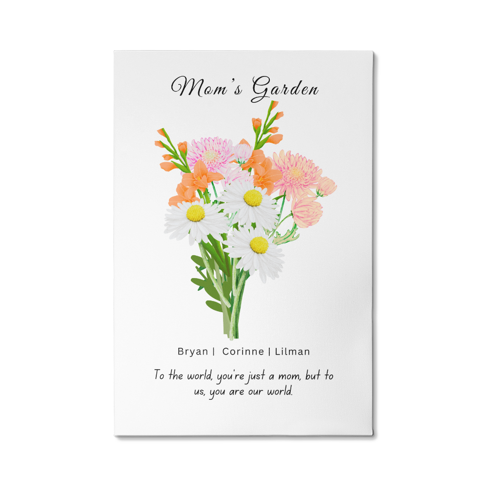 Mom's Flower Garden Bouquet | Beautiful Wrapped Canvas | Displays Children's name and their birth flower