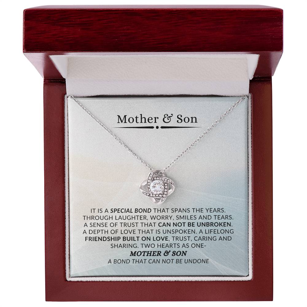 Mother & Son IT IS A SPECIAL BOND THAT SPANS THE YEARS. THROUGH LAUGHTER, WORRY, SMILES AND TEARS. A SENSE OF TRUST THAT CAN NOT BE UNBROKEN. A DEPTH OF LOVE THAT IS UNSPOKEN. A LIFELONG FRIENDSHIP BUILT ON LOVE, TRUST, CARING AND SHARING. TWO HEARTS AS ONE-MOTHER & SON A BOND THAT CAN NOT BE UNDONE