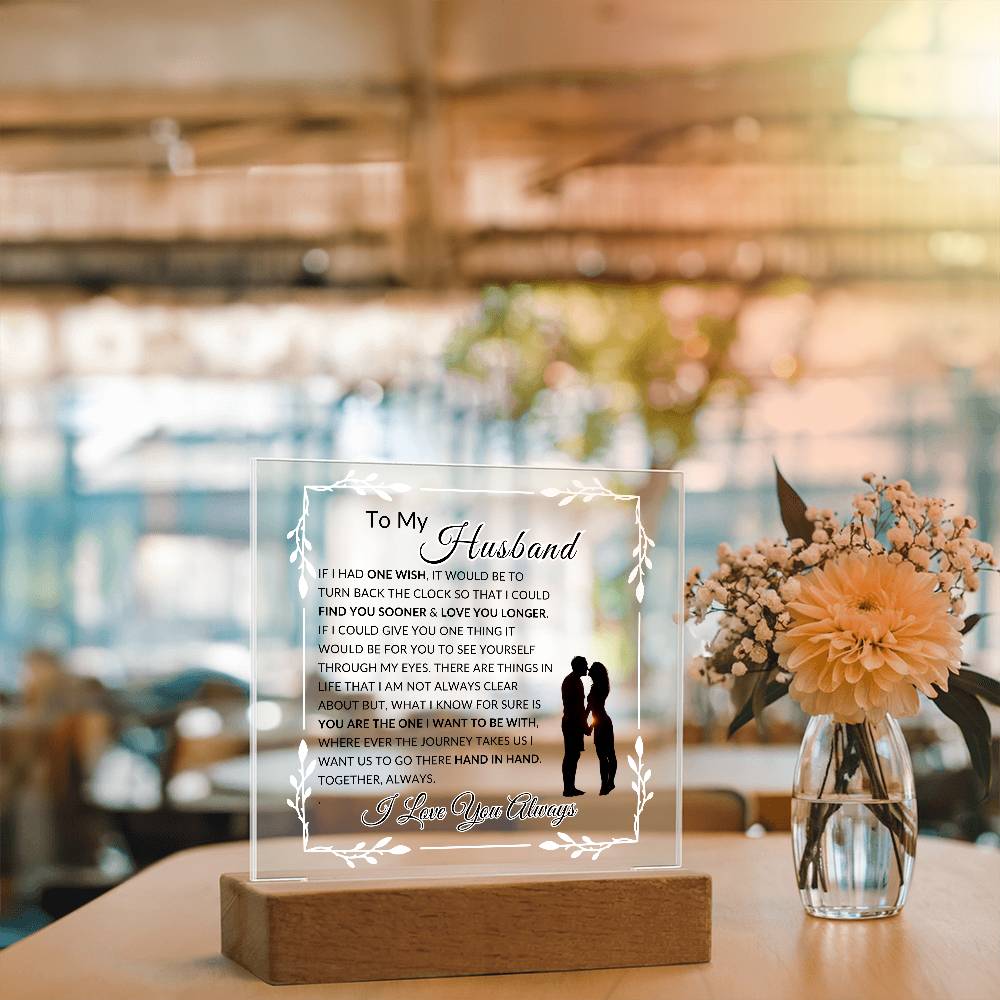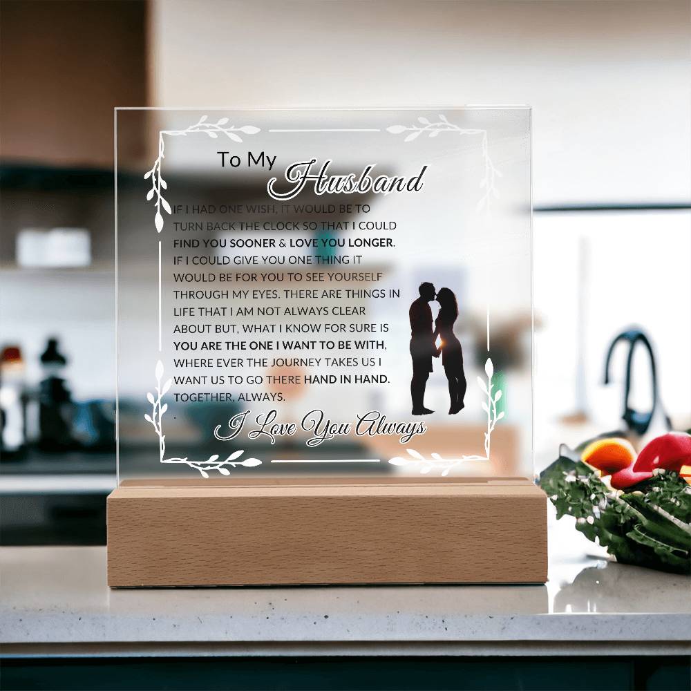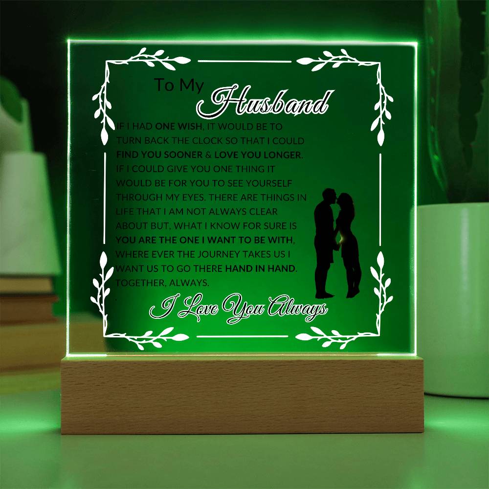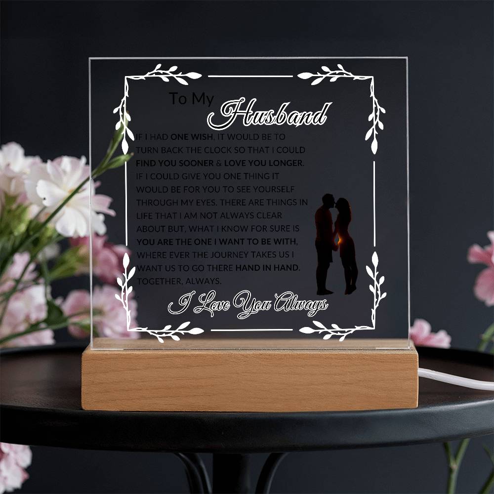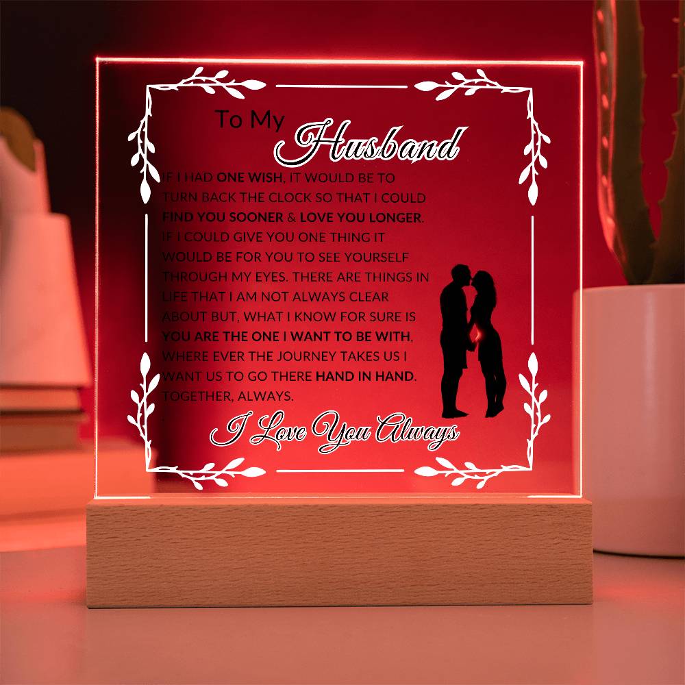 To My Husband, IF I HAD ONE WISH, IT WOULD BE TO TURN BACK THE CLOCK SO THAT I COULD FIND YOU SOONER & LOVE YOU LONGER. IF I COULD GIVE YOU ONE THING IT WOULD BE FOR YOU TO SEE YOURSELF THROUGH MY EYES. THERE ARE THINGS IN LIFE THAT I AM NOT ALWAYS CLEAR ABOUT BUT, WHAT I KNOW FOR SURE IS YOU ARE THE ONE I WANT TO BE WITH, WHERE EVER THE JOURNEY TAKES US I WANT US TO GO THERE HAND IN HAND. TOGETHER, ALWAYS. I Love You