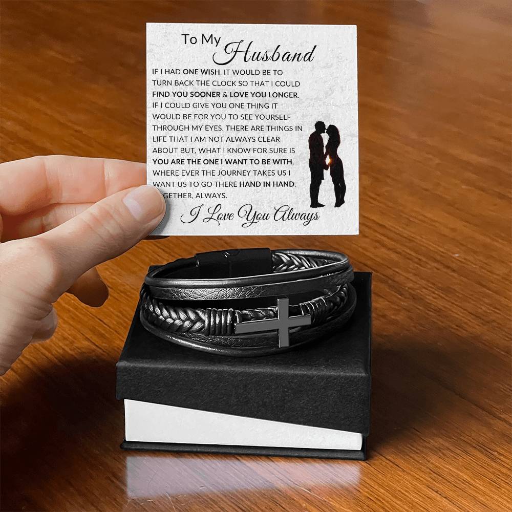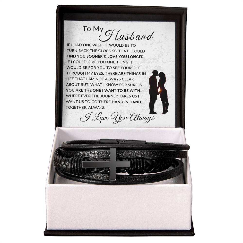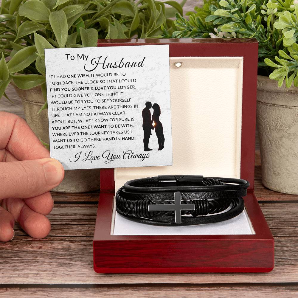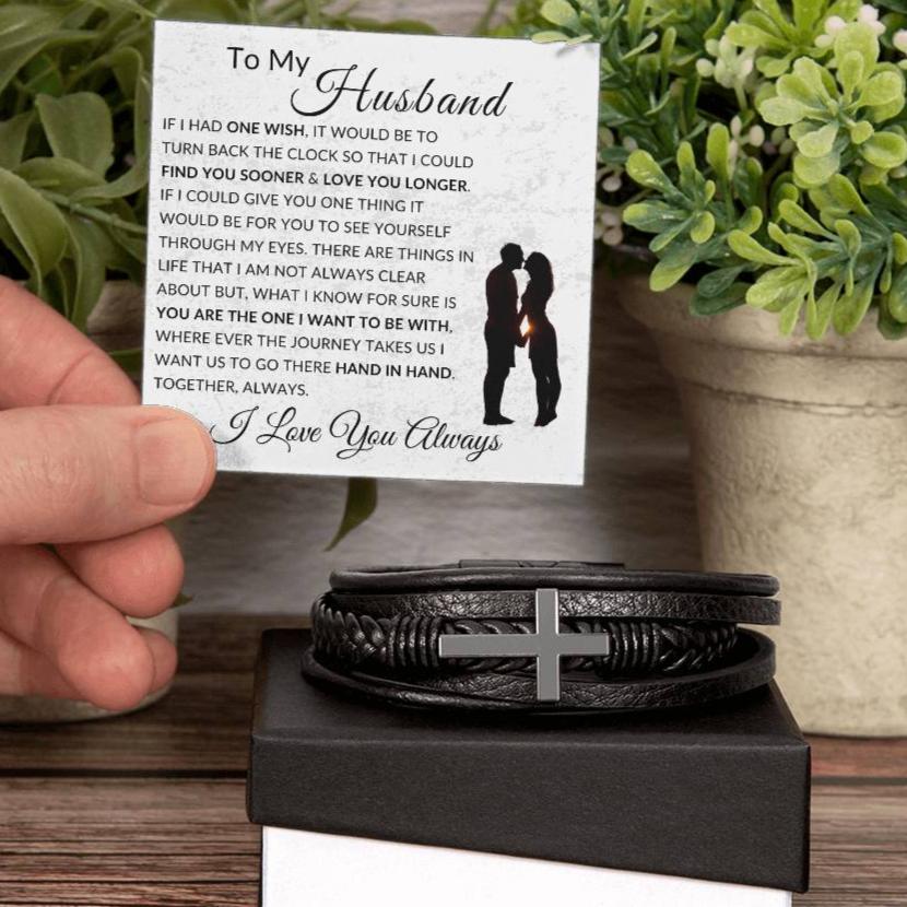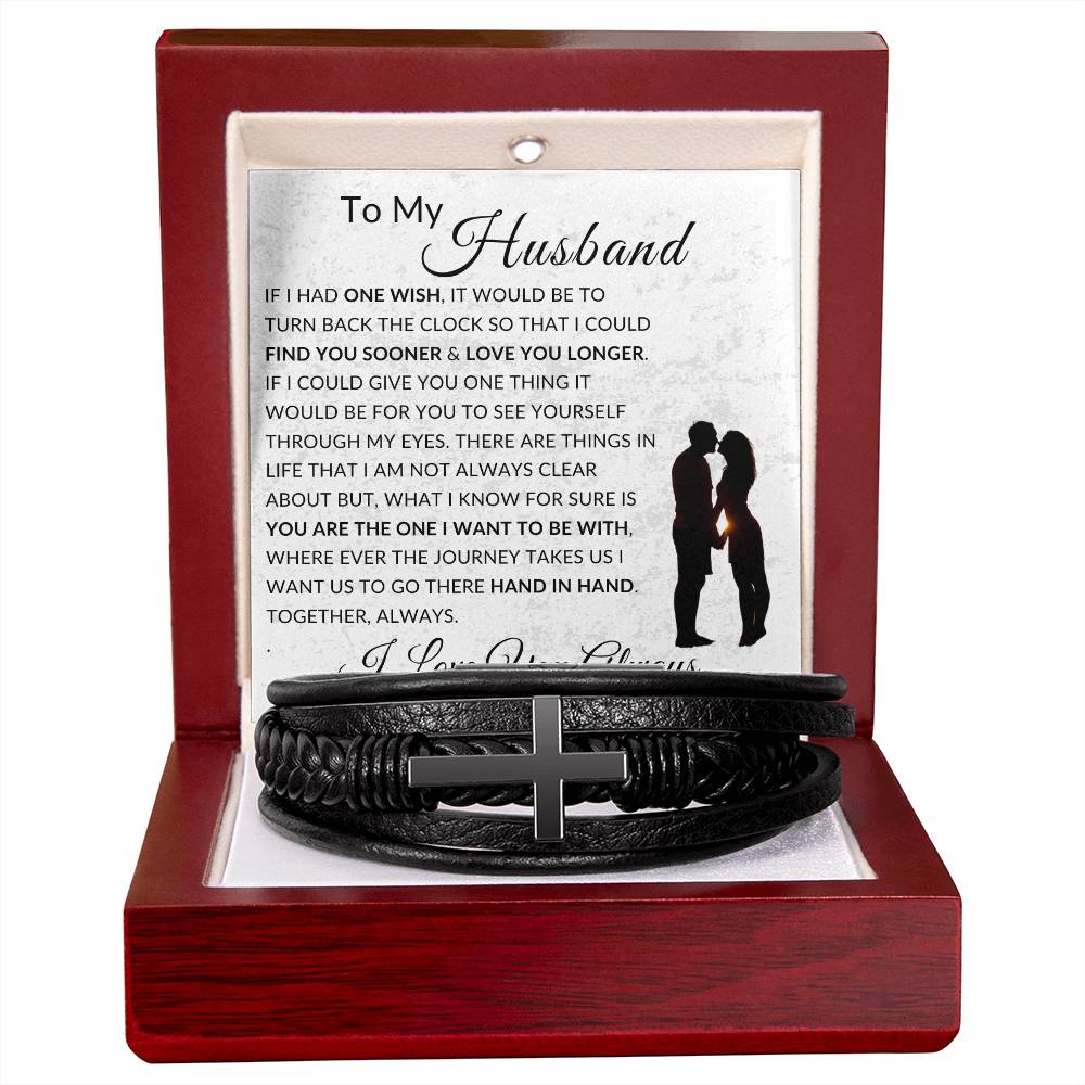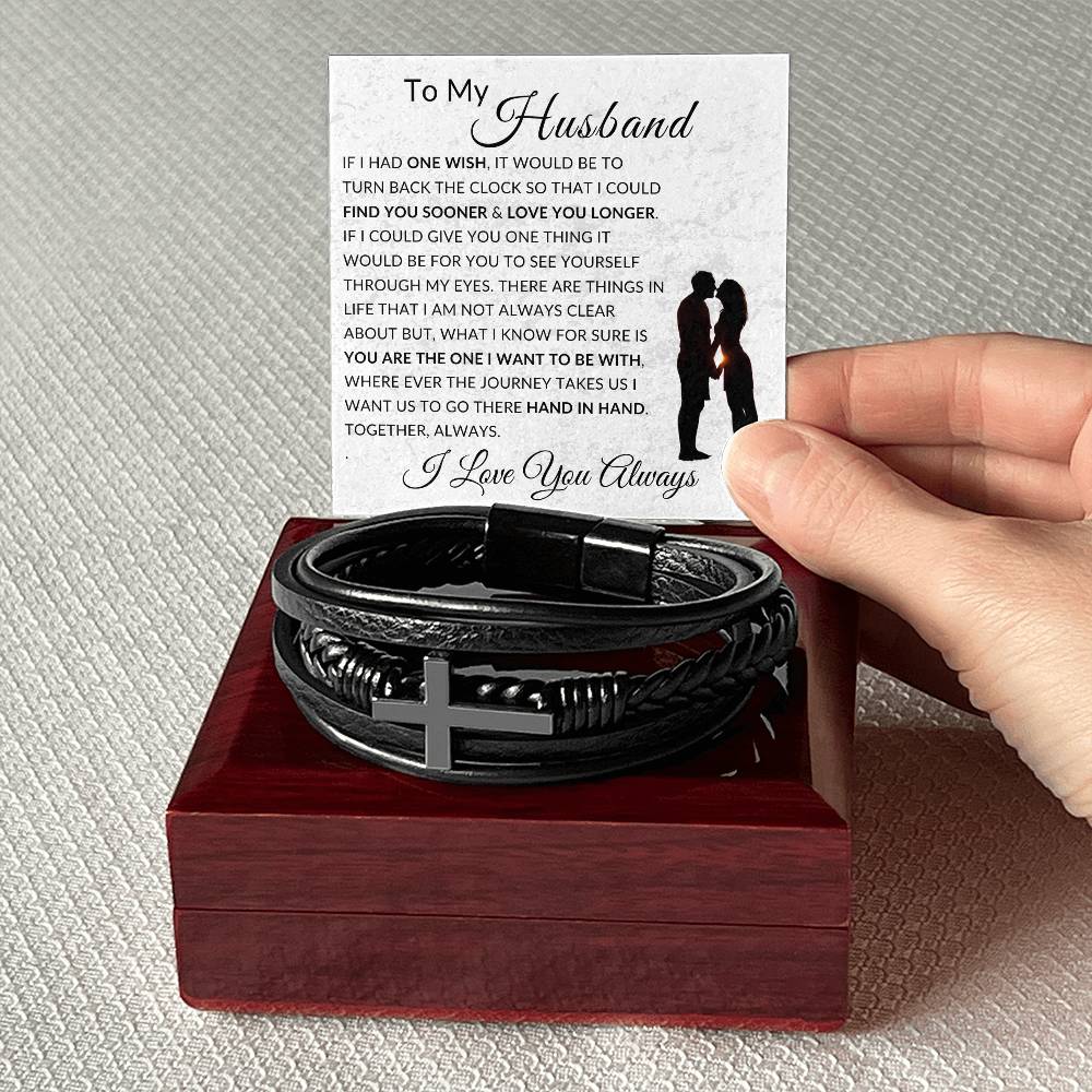 One Wish To My Husband | Men's Cross Leather Bracelet