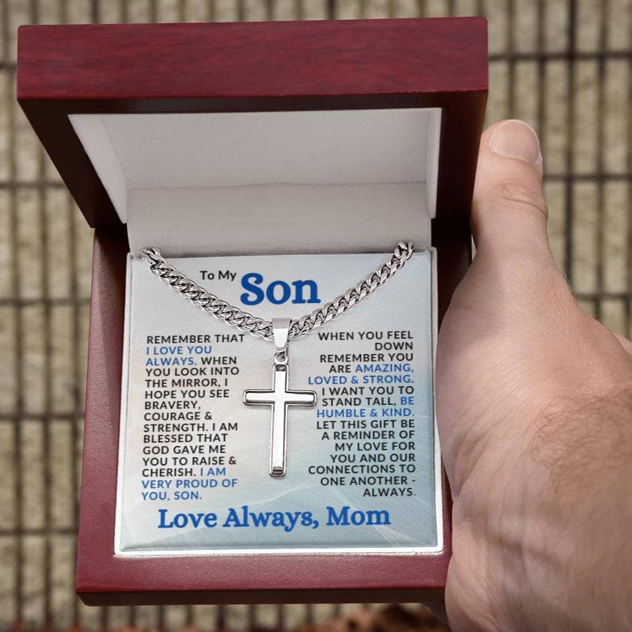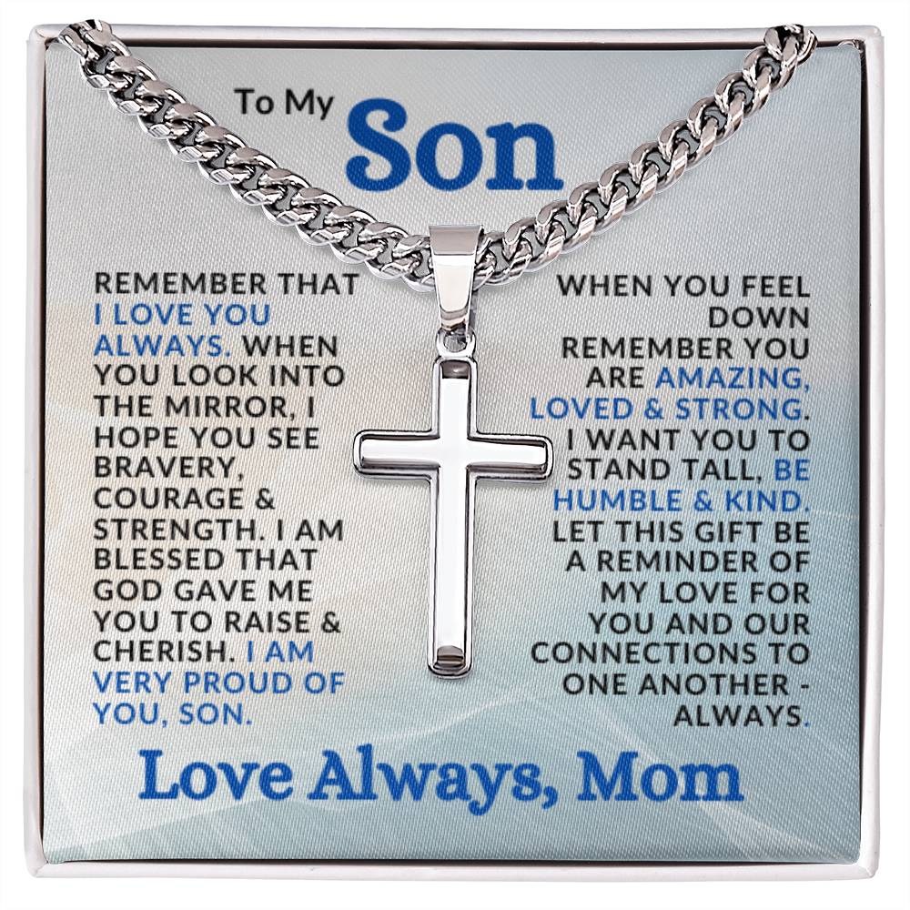 Special Gift to Son from Mom | Cuban Chain with Artisan Cross Necklace | I Am Proud of You