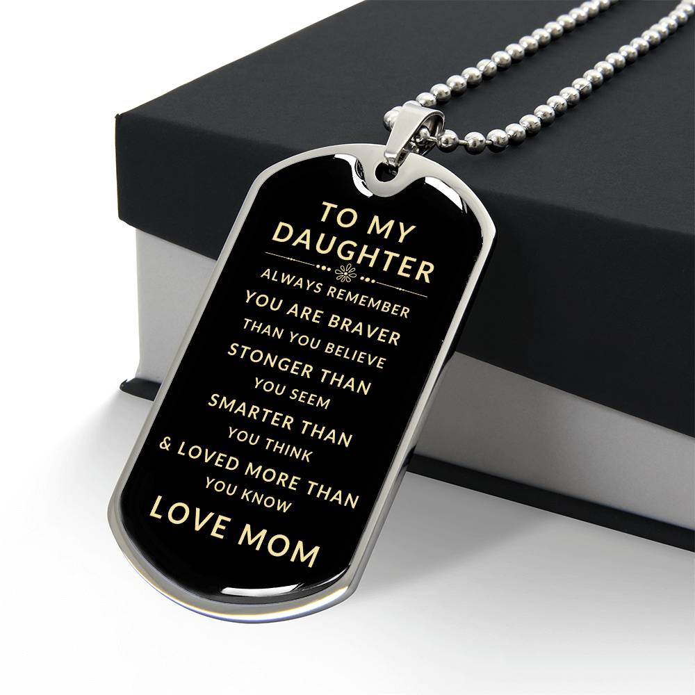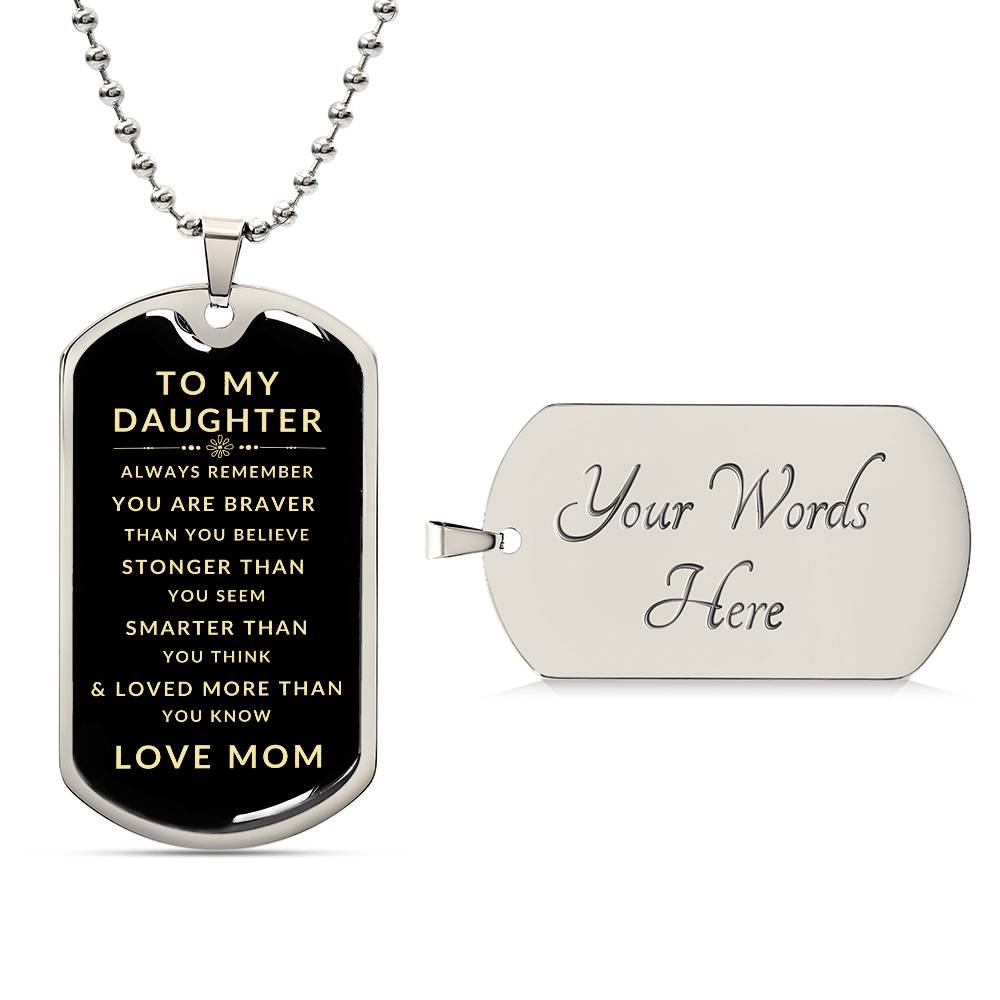 To My Daughter Love Mom | Luxury Military Necklace With Dog Tag | Gift For Daughter