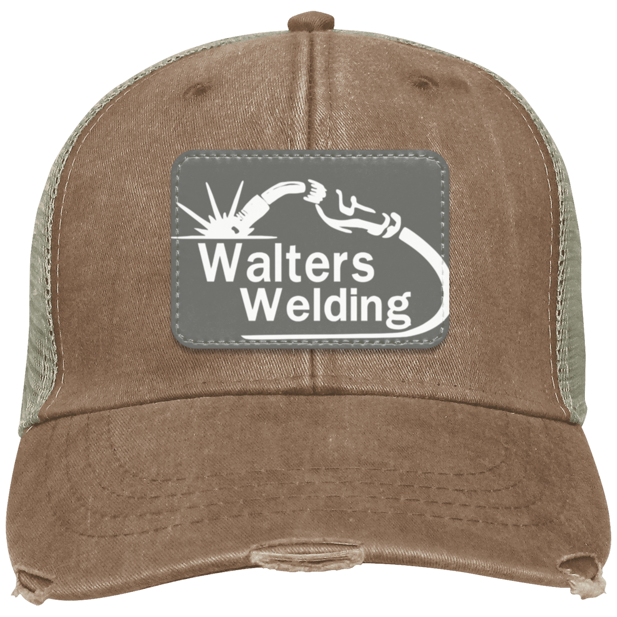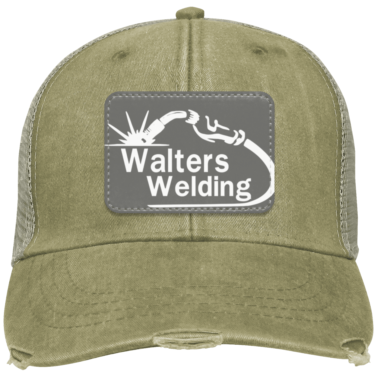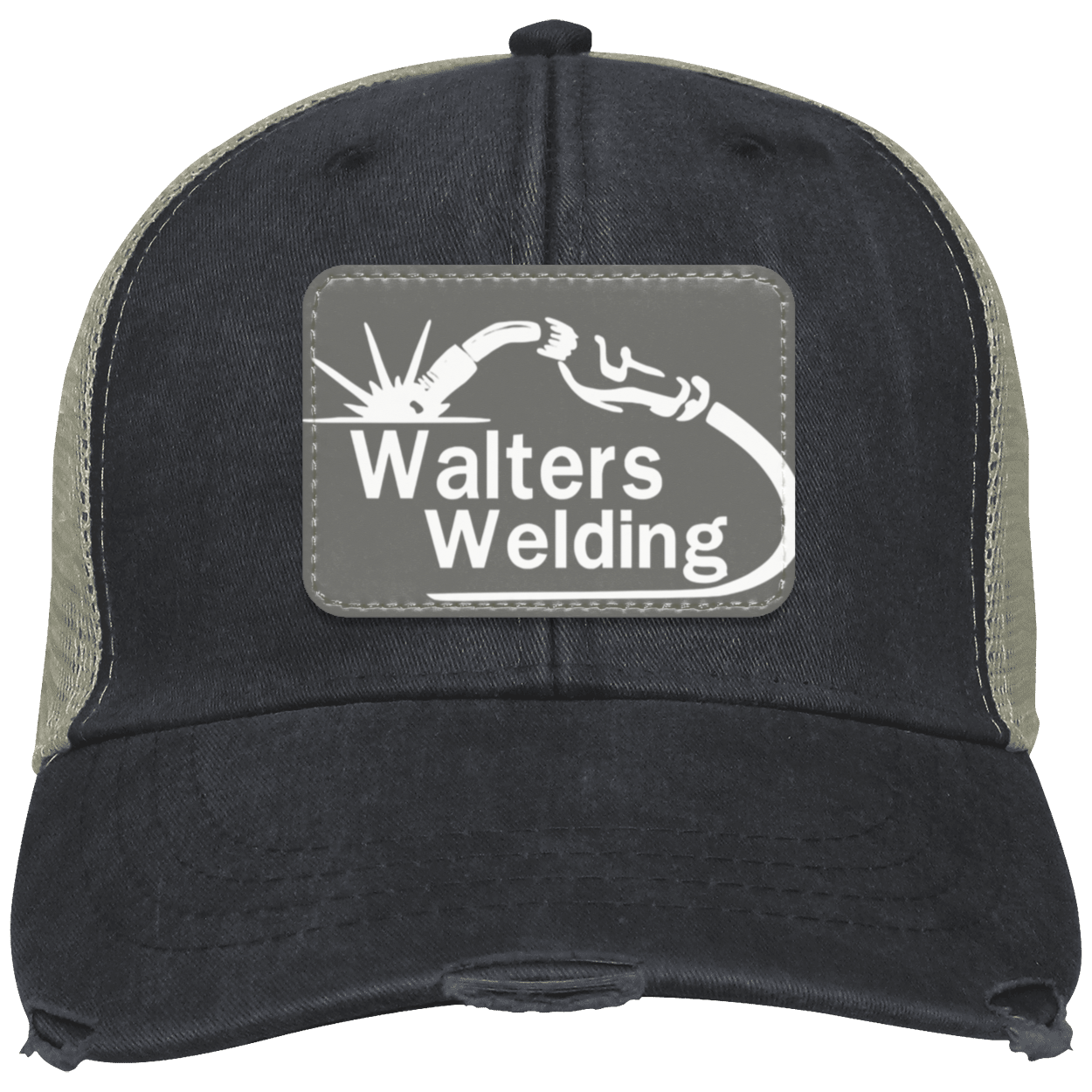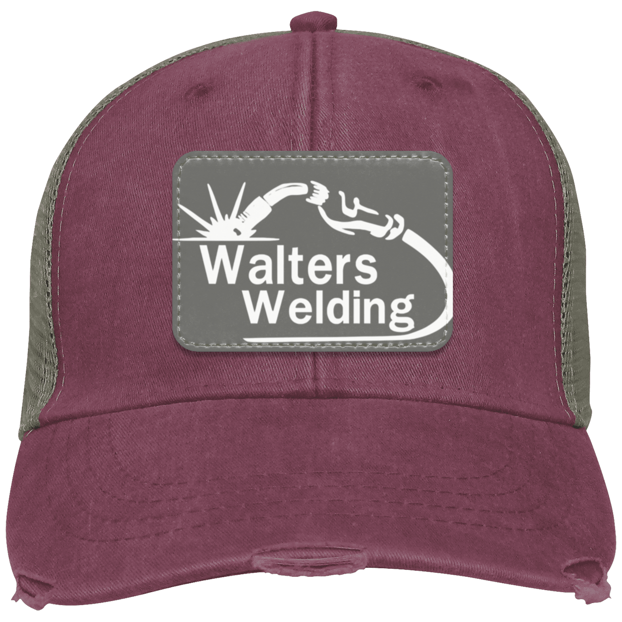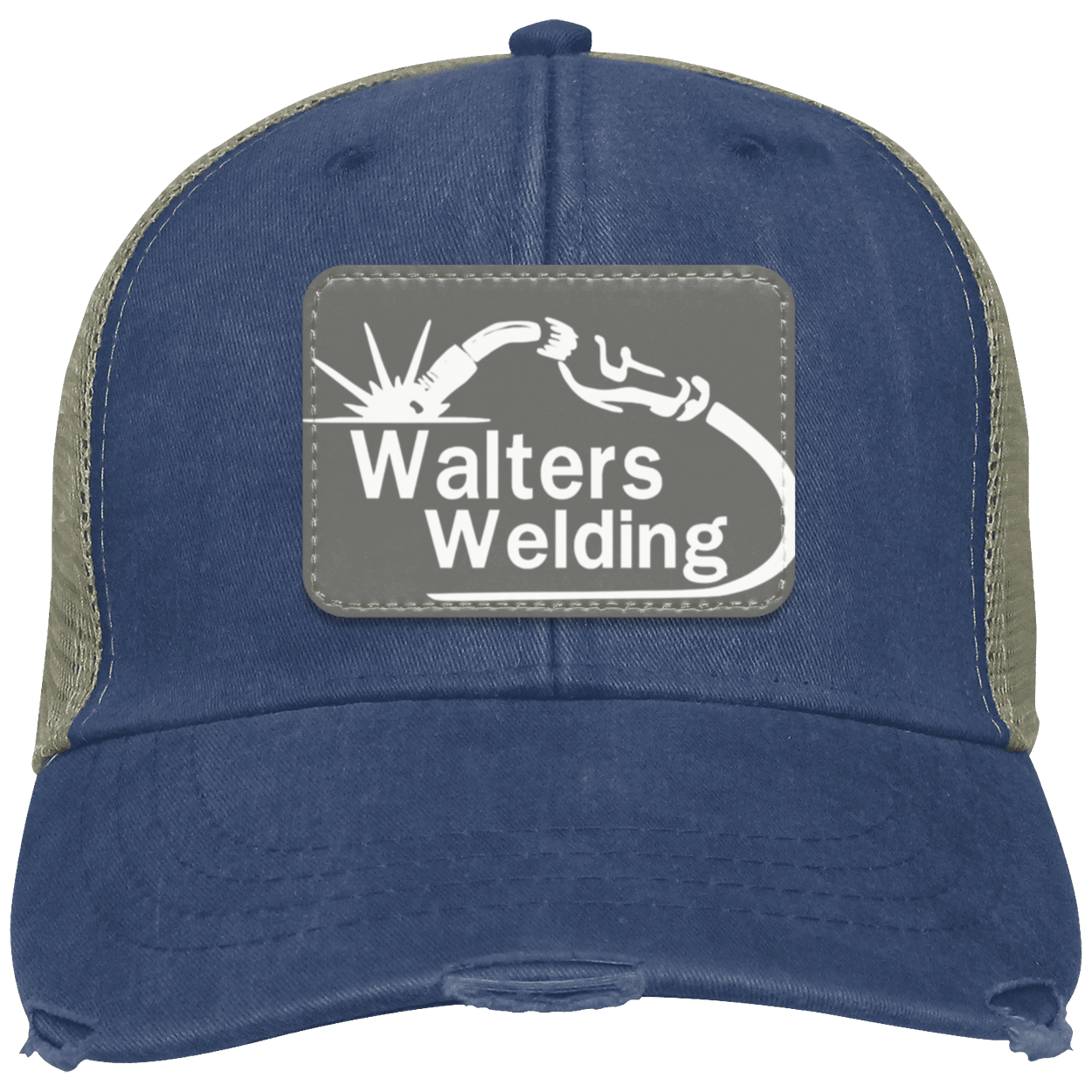 - Distressed torn visor, cotton twill sweatband; four-row stitching on bill